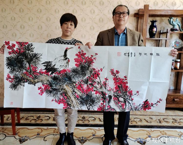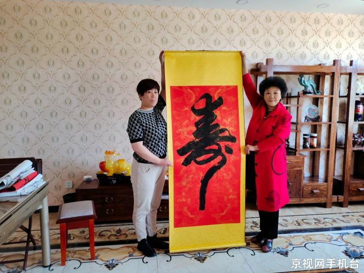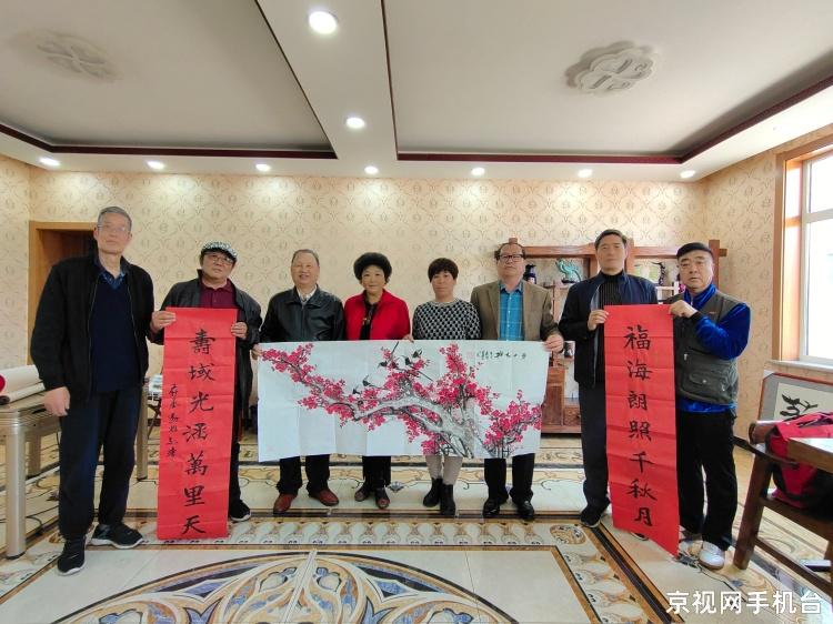 京视网手机台(名家艺韵)频道总编辑金凤代爱心艺术家战国权捐赠墨宝。今天聚集在一起的这几位艺术家都是随捐一百家敬老院的奉献者,是爱心奉献让大家凝聚在一起。