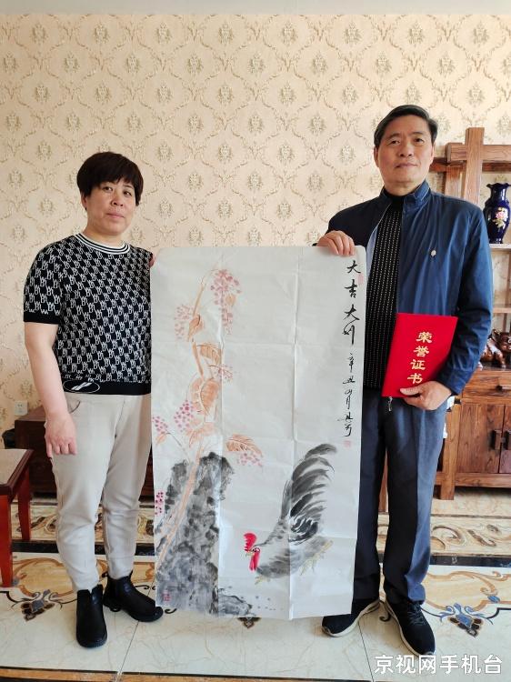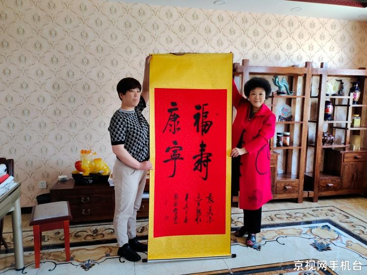 京视网手机台(名家艺韵)频道总编辑金凤代爱心艺术家郑景泉捐赠墨宝