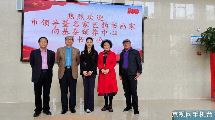 2021年10月10日,为老人送祝福,走进百家养老院捐赠墨宝奉献爱心大型公益活动发起人,京视网手机台名家艺韵频道总编辑、名家艺韵创始人、毛泽东研究院书画院常务副院长、知名网络媒体人、社会活动家、慈善家金凤女士,著名教育家、学者、李苦禅先生入室弟子、著名画家金奎先生,北京市东城区书法家协会副主席马明先生,中国建材杂志社社长、著名书法家秦春雨先生,中国实力派演员,中国诗书画理事胡彩虹女士,一同走进河北保定市河北基泰养老服务有限公司,保定市东篱养老服务有限公司,保定市春辉养老院,保定市竞秀区长寿园老年公寓等四家养老机构进行了书画捐赠活动。保定市政府副市长单有高,市民政局局长田彦军,市民政局副局长贾亮君,莲池区政府副区长曹光远,莲池区民政局局长于燕勇,市民政局处长王二军。对全身致力于爱心慈善事业,风尘仆仆从北京驱车赶来的慈善艺术家们,表示热烈的欢迎和真诚的谢意!保定市民政局长田彦军同志致欢迎词,保定市政府副市长单有高向书画家颁发捐赠证书。此次捐赠养老院书画作品的艺术家未能到现场的,名家艺韵创始人代理捐赠。她们是著名书画家杜清文女士,著名画家姚晓峰先生,书法家范景泉先生,画家俞朝富先生,画家刘兴前先生,书法家朱华先生,书法家杨松涛先生。我们这次来保定捐赠活动是胡彩虹女士联系完成的。而且我们要特别感谢她在百忙之中,利用拍戏之余,创作捐赠书画作品。