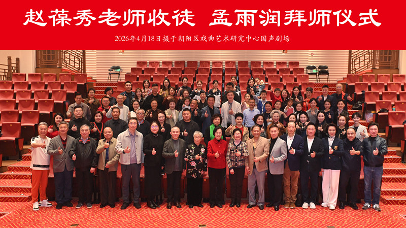 2026年4月18日上午,北京市朝阳戏曲艺术中心内华灯璀璨、梨园飘香。由原北京电视台著名主持人、首任梅兰芳大剧院总经理余声女士倾情主持,著名京剧表演艺术家、国家级非遗传承人赵葆秀收徒仪式隆重举行。青年教师孟雨润正式拜入赵葆秀门下,京剧界前辈与各界嘉宾齐聚一堂,共同见证这一梨园盛事,为京剧老旦艺术的薪火相传写下浓墨重彩的一笔。