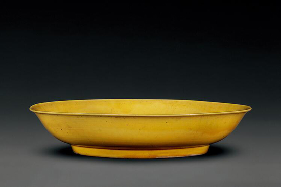 低温黄釉瓷创烧于明初景德镇御窑,以后各朝均有烧造,以弘治朝产品色泽最为纯正。由于黄釉瓷一般采用浇釉方法施釉,故有“浇黄”之称;又因其釉色娇嫩淡雅,故又有“娇黄”之美誉。