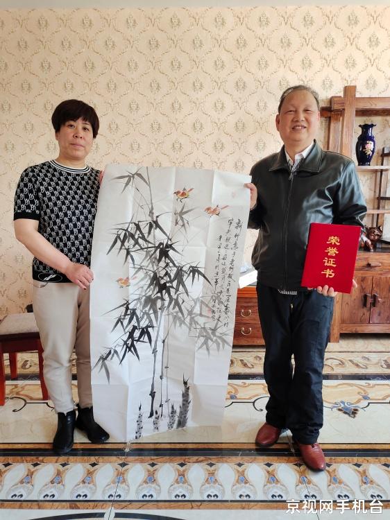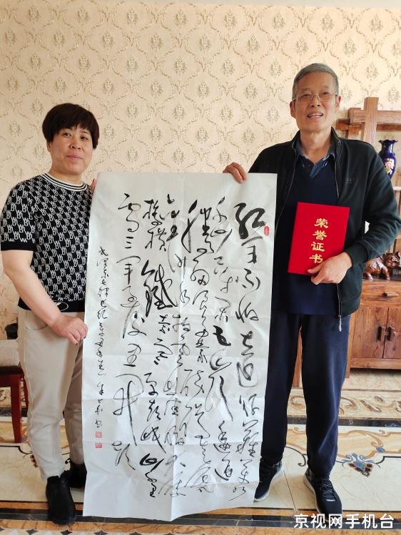 京视网手机台(名家艺韵)频道总编辑金凤代爱心艺术家郑景泉捐赠墨宝