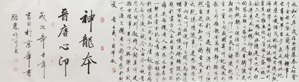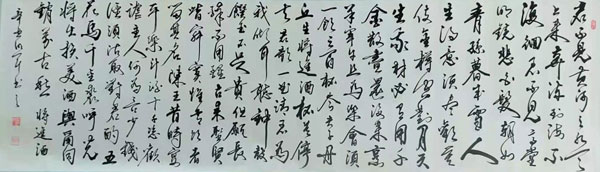 尤其是1993年从部队退役后,始终以一个老兵的姿态,在艺海学书的漫长道路上,凭借着对书法艺术的无 比痴爱,以坚韧的毅力,笔耕不辍,勤学苦练,“榜书”及左笔书法上取得丰硕成果,专家评语“用笔苍劲有力,收放自如、势如破竹,字体雄厚、飘逸洒脱,无拘无束、拙中见妙,可谓独成一体,尽现书法线条艺术魅力”。