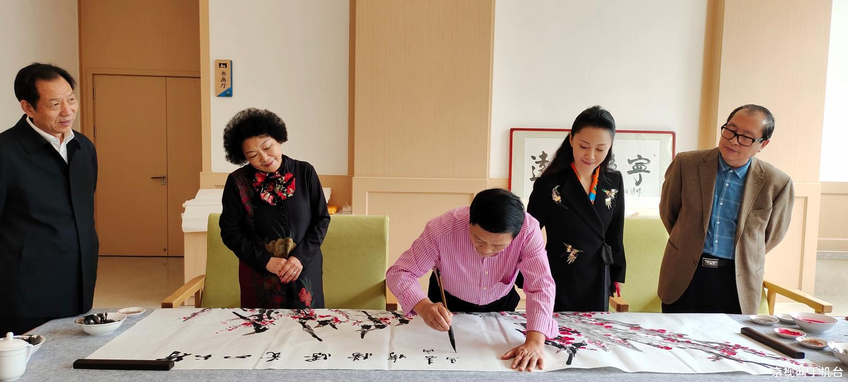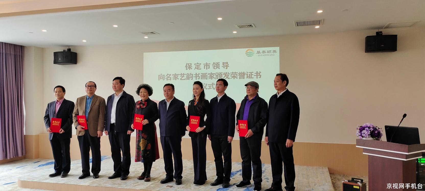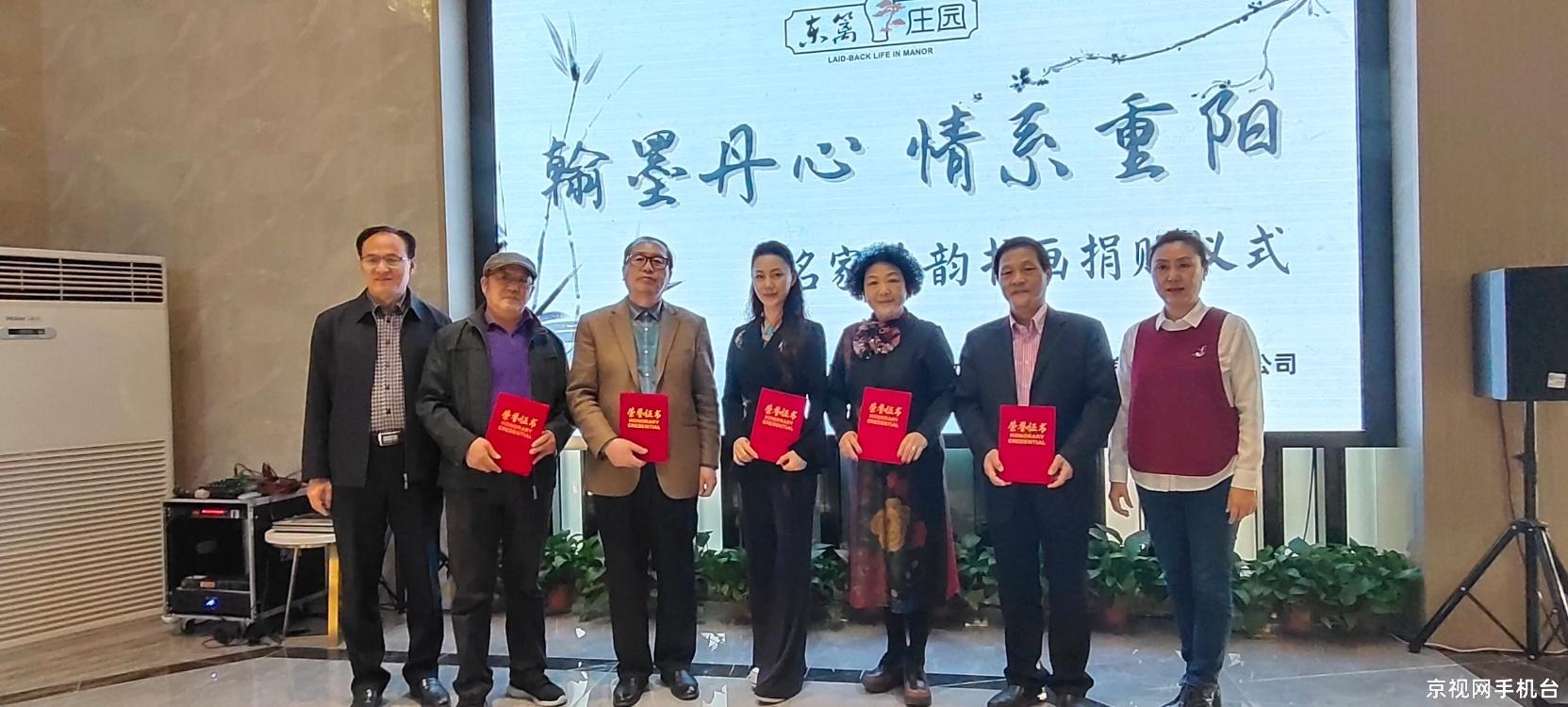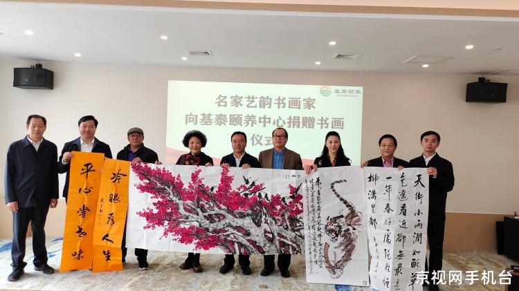 2021年10月10日,为老人送祝福,走进百家养老院捐赠墨宝奉献爱心大型公益活动发起人,京视网手机台名家艺韵频道总编辑、名家艺韵创始人、毛泽东研究院书画院常务副院长、知名网络媒体人、社会活动家、慈善家金凤女士,著名教育家、学者、李苦禅先生入室弟子、著名画家金奎先生,北京市东城区书法家协会副主席马明先生,中国建材杂志社社长、著名书法家秦春雨先生,中国实力派演员,中国诗书画理事胡彩虹女士,一同走进河北保定市河北基泰养老服务有限公司,保定市东篱养老服务有限公司,保定市春辉养老院,保定市竞秀区长寿园老年公寓等四家养老机构进行了书画捐赠活动。保定市政府副市长单有高,市民政局局长田彦军,市民政局副局长贾亮君,莲池区政府副区长曹光远,莲池区民政局局长于燕勇,市民政局处长王二军。对全身致力于爱心慈善事业,风尘仆仆从北京驱车赶来的慈善艺术家们,表示热烈的欢迎和真诚的谢意!保定市民政局长田彦军同志致欢迎词,保定市政府副市长单有高向书画家颁发捐赠证书。此次捐赠养老院书画作品的艺术家未能到现场的,名家艺韵创始人代理捐赠。她们是著名书画家杜清文女士,著名画家姚晓峰先生,书法家范景泉先生,画家俞朝富先生,画家刘兴前先生,书法家朱华先生,书法家杨松涛先生。我们这次来保定捐赠活动是胡彩虹女士联系完成的。而且我们要特别感谢她在百忙之中,利用拍戏之余,创作捐赠书画作品。