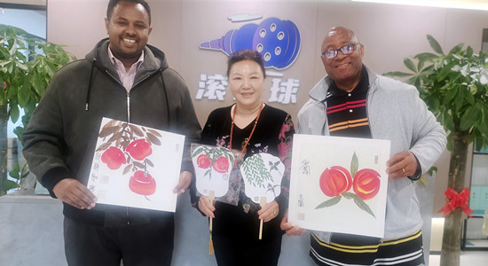 2025年4月21日,中国扇子艺术学会常务理事、北京市收藏家协会书画鉴藏工作委员会常务副会长、北京东城美协会员、名家艺韵创始人、知名网络媒体人,慈善家金凤女士,应邀参加“滚雪球”公司项目洽谈会,特意带上几幅小品当做礼物送给埃塞俄比亚代表和尼日利亚代表。祝愿我们公司的合作项目早日落地成功!